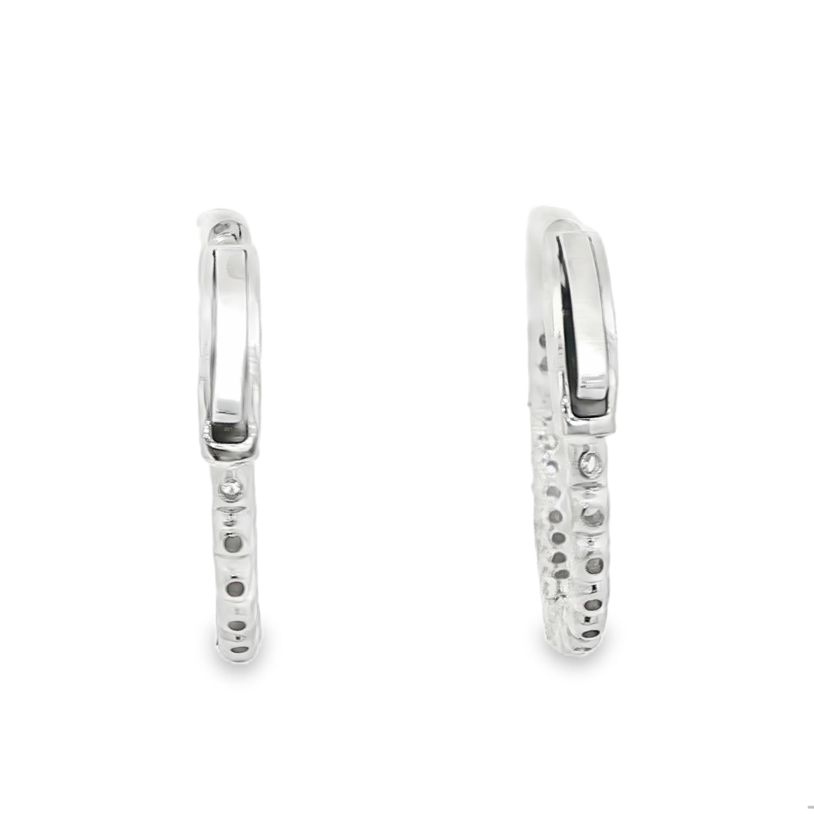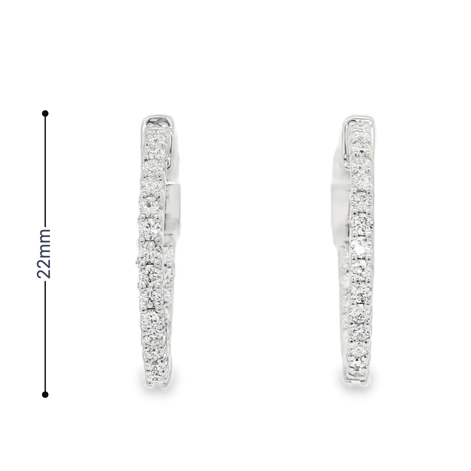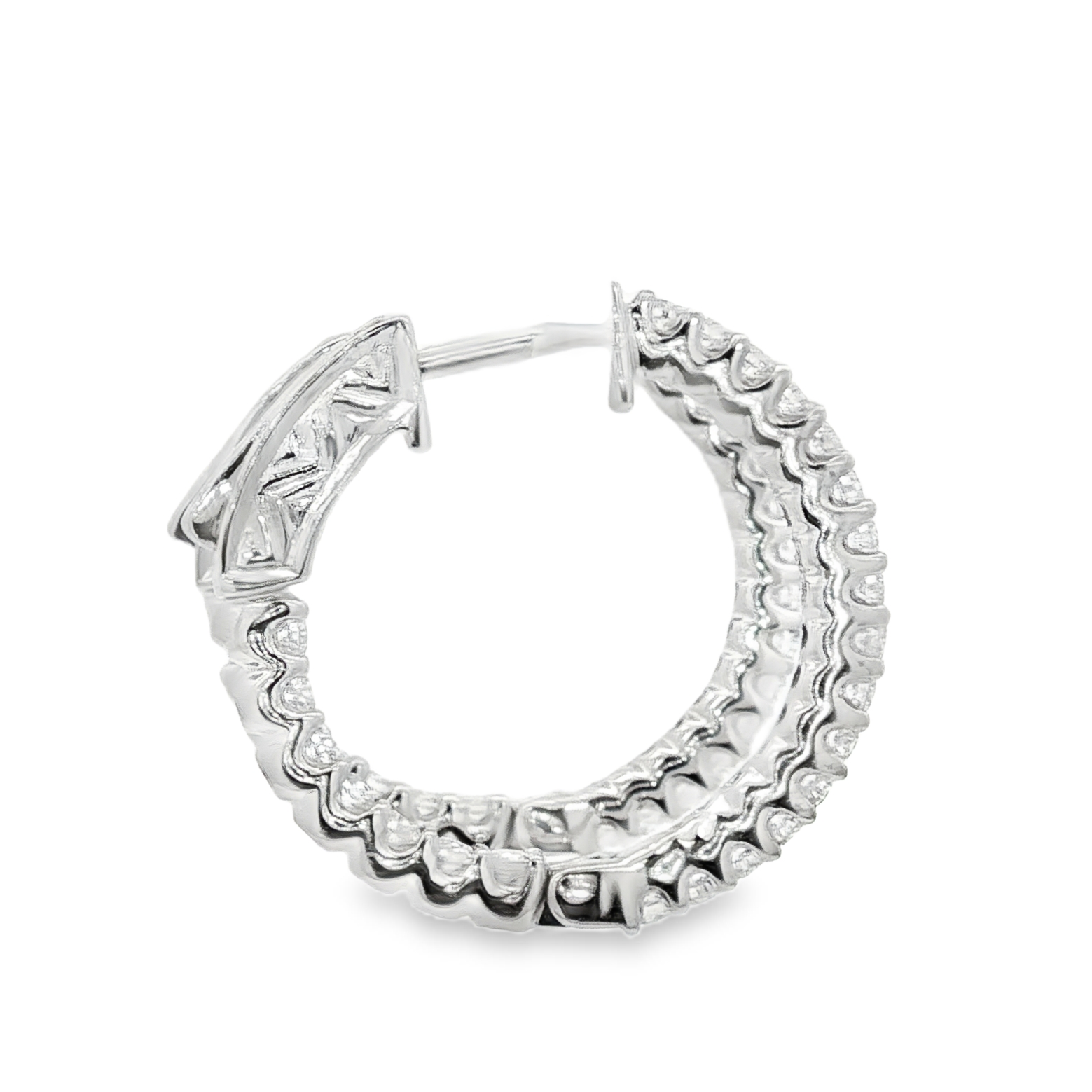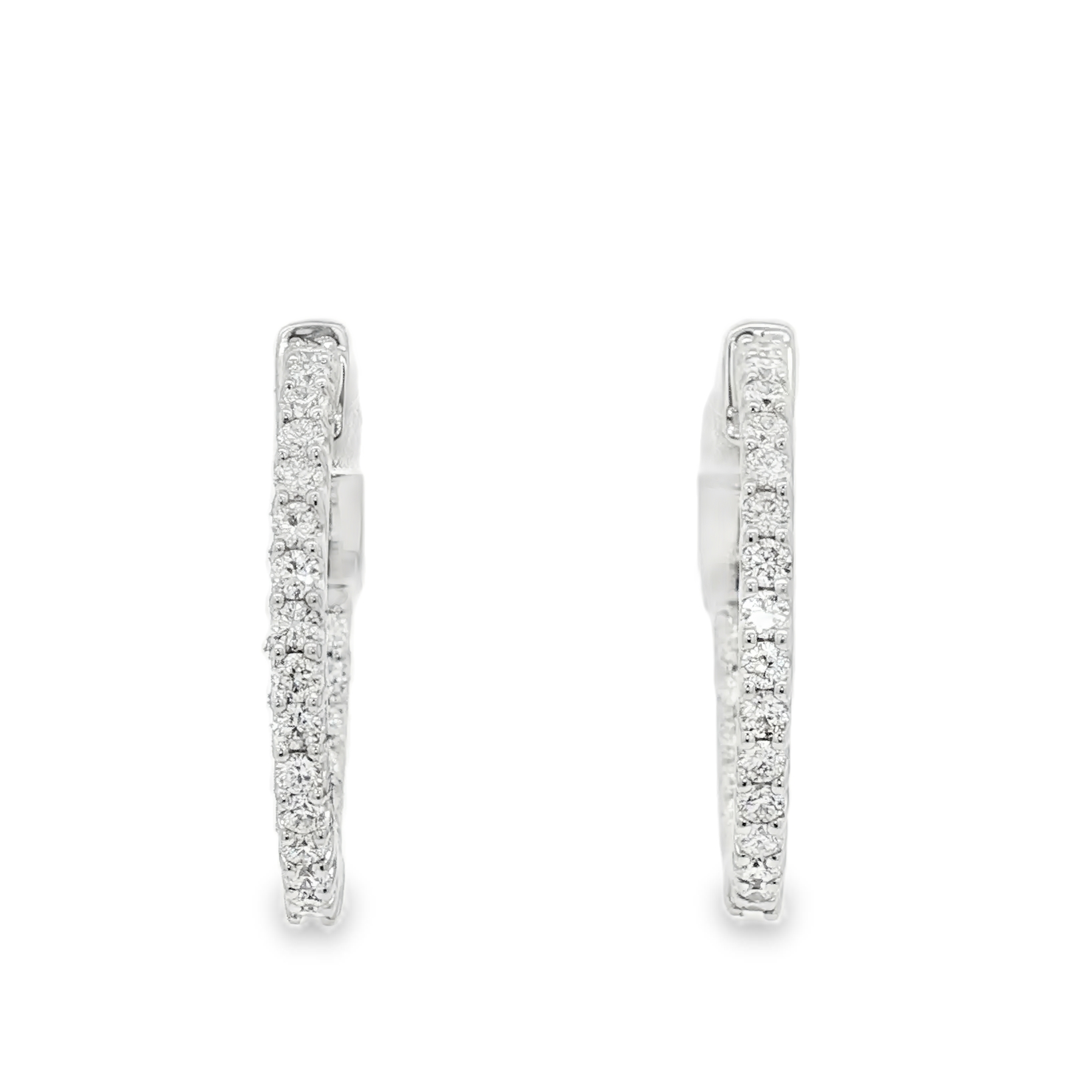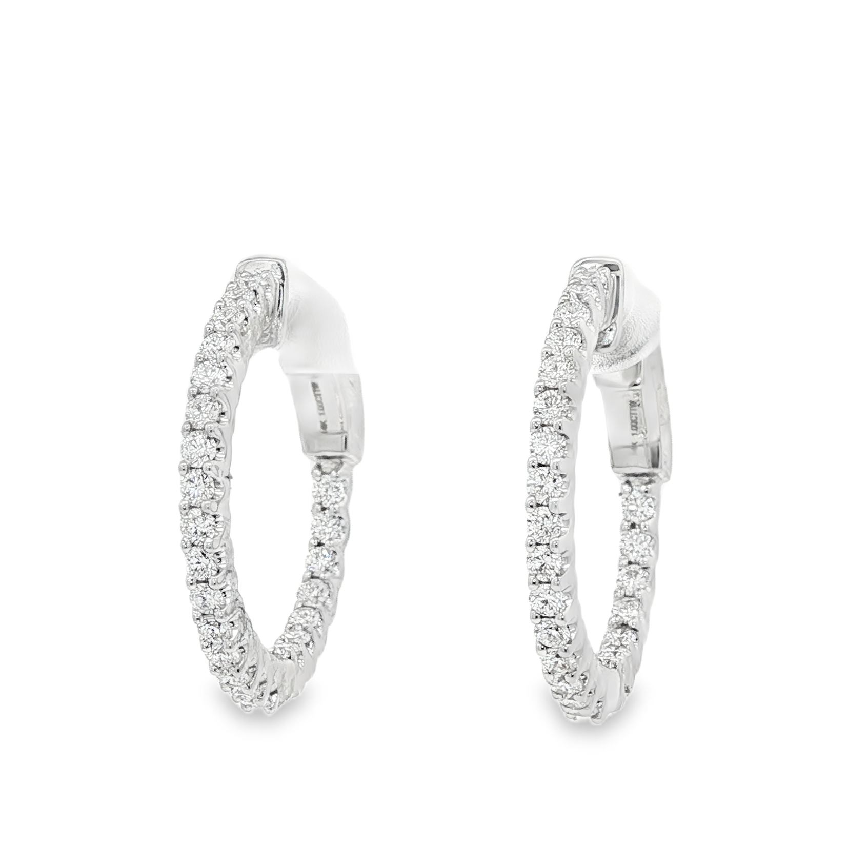 Elevate your style with these exquisite hoop earrings. Crafted from lustrous 14k white gold, they feature a classic round brilliant cut diamond, adding a touch of glamour to any ensemble. The front facing design ensures maximum visibility, while the absence of markings preserves the clean, minimalist aesthetic.