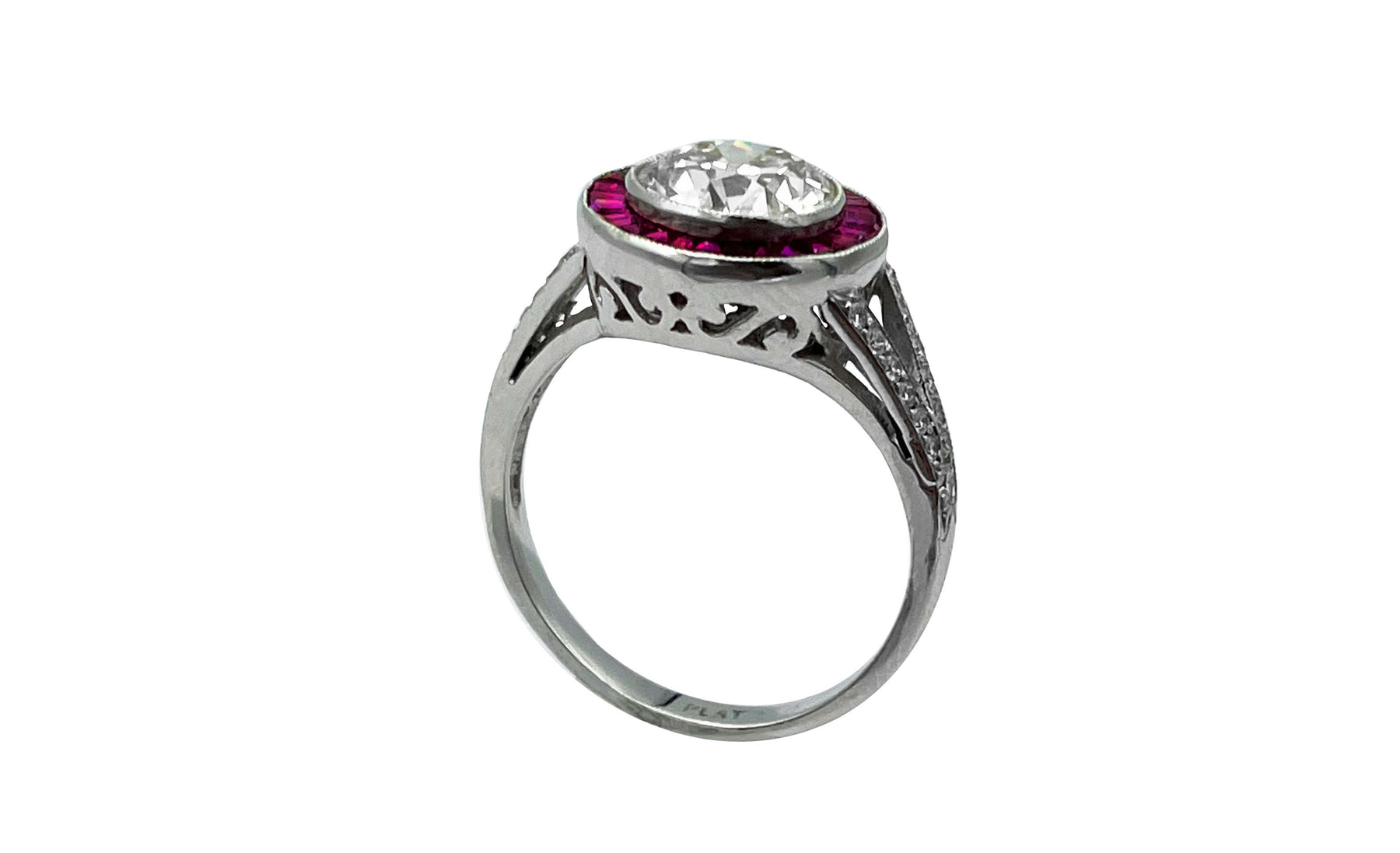 Platinum Diamond and Rubies Engagement Ring Setting.