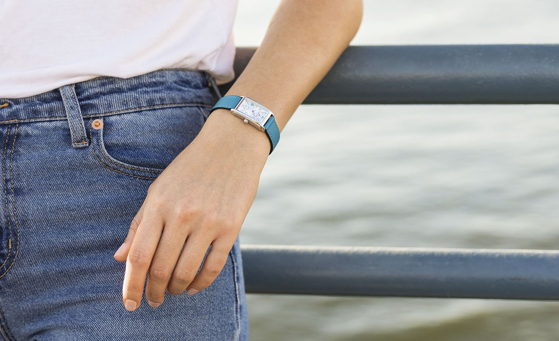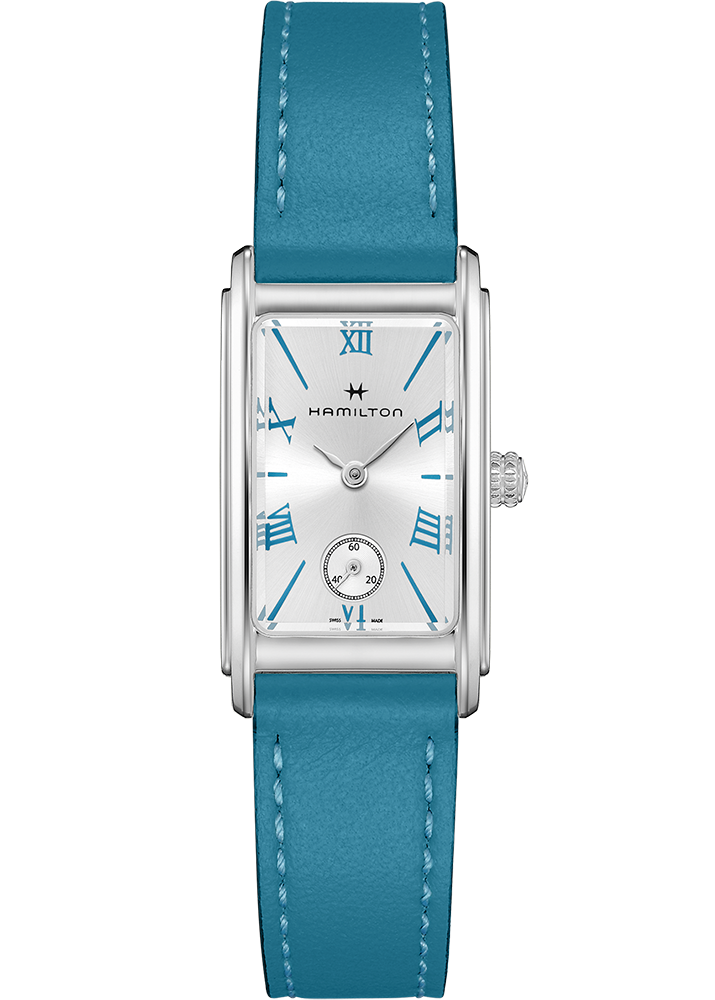A vibrant turquoise leather strap and matching-in-color Roman numerals take the Lady Ardmore Quartz from a subtle Art Deco revival to a decadent of-the-moment statement maker. Sophisticated and fun, the angular case seamlessly blends American Classic style with contemporary colorways for a look that is sure to turn heads.