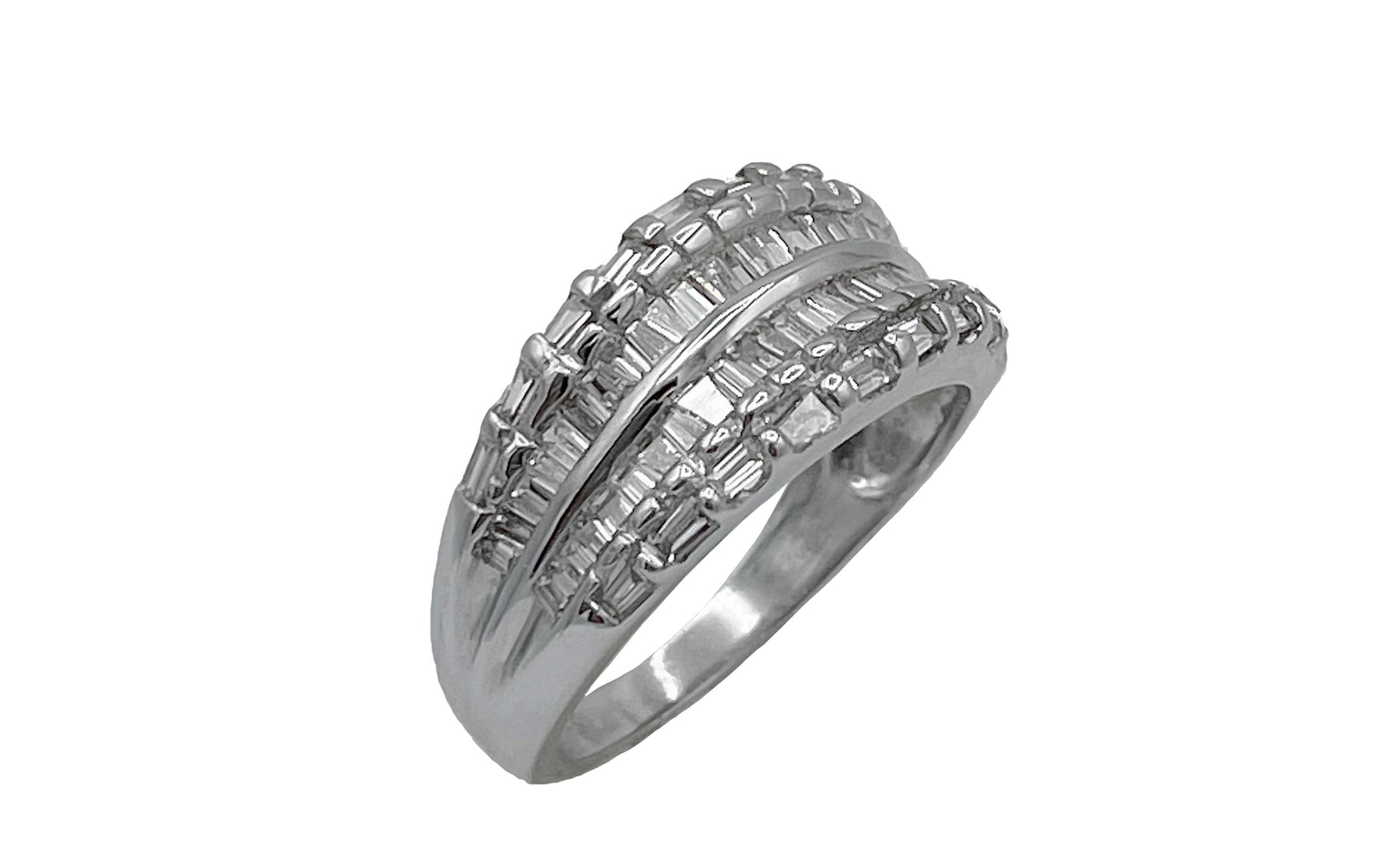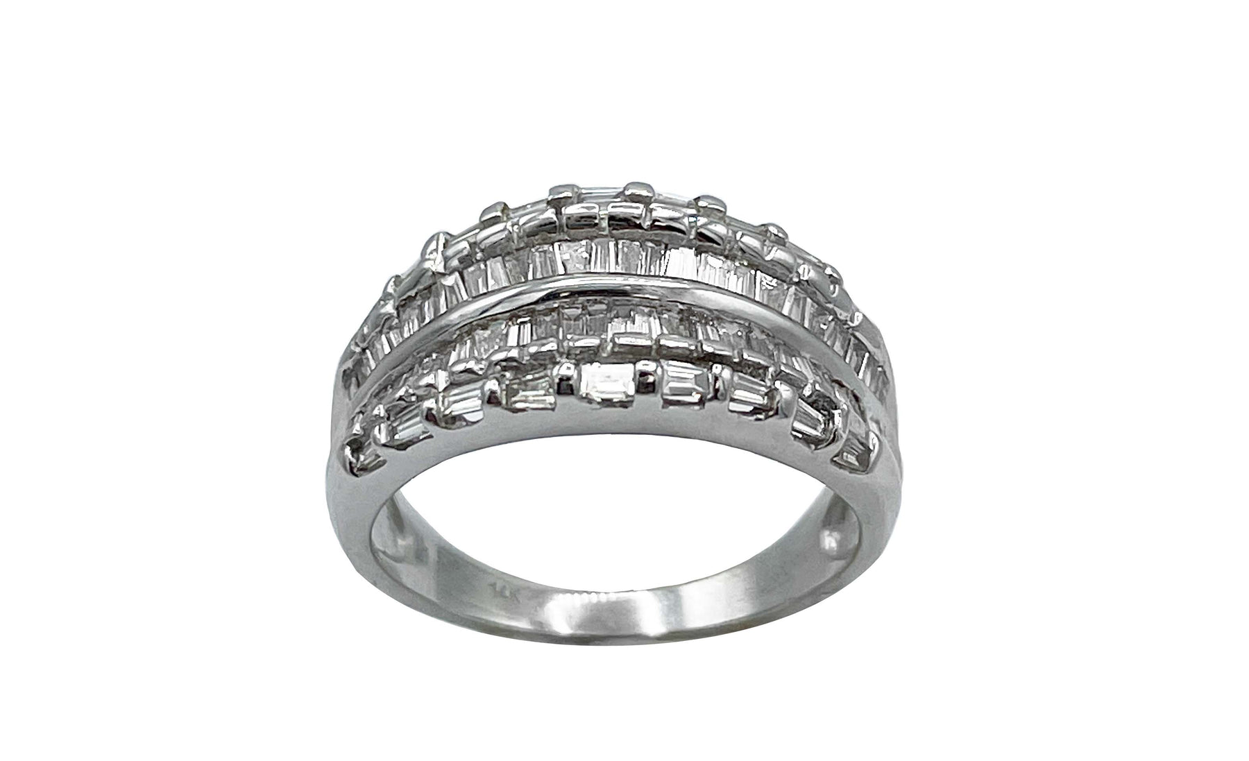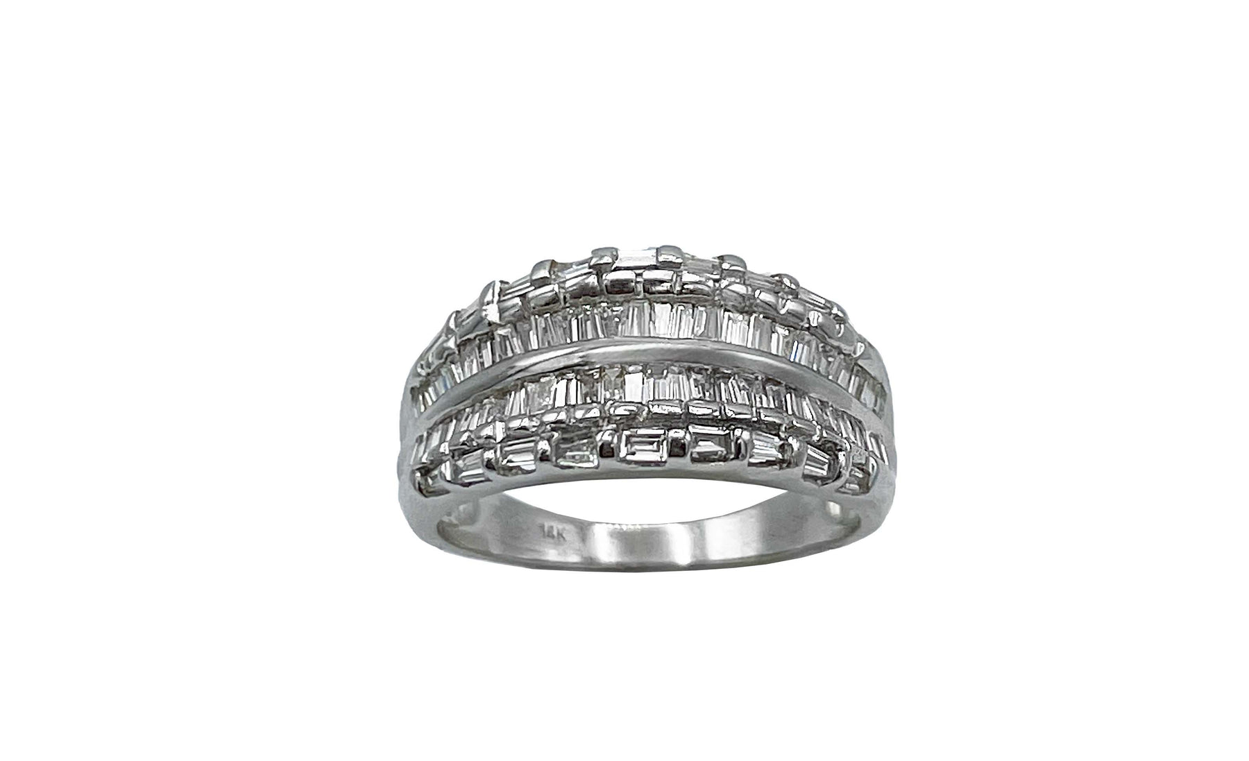 Solid 14k White Gold ring encrusted with baguette diamonds.