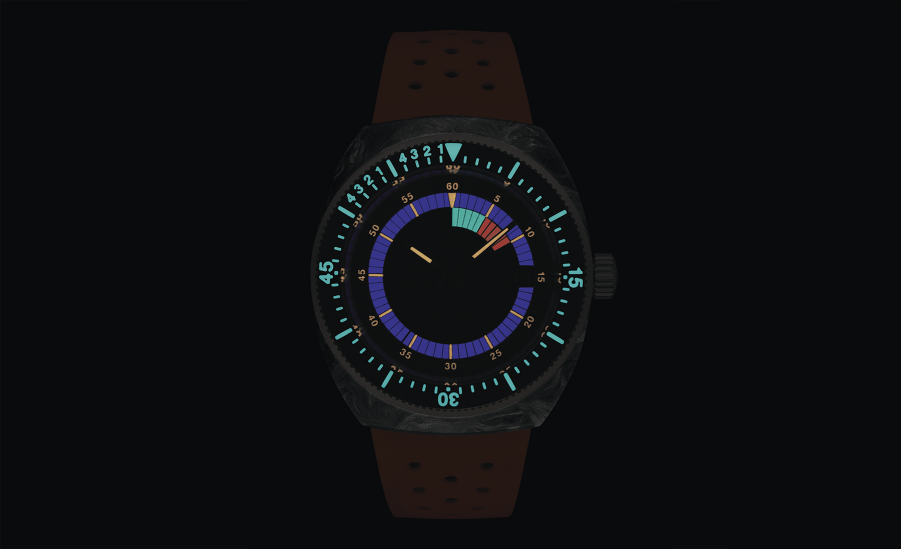 • 316L stainless steel case with marbled forged carbon